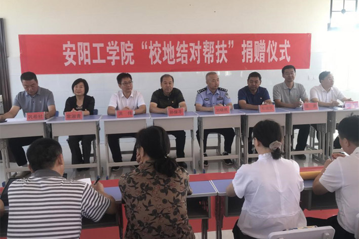 在内黄县高堤乡袁庄村,孙保平一行出席了“校地结对帮扶”捐赠仪式,并代表我校向高堤乡第五小学捐款6.8万元,用于购买教室桌椅板凳及乒乓球台、单杠、双杠等教学设施。