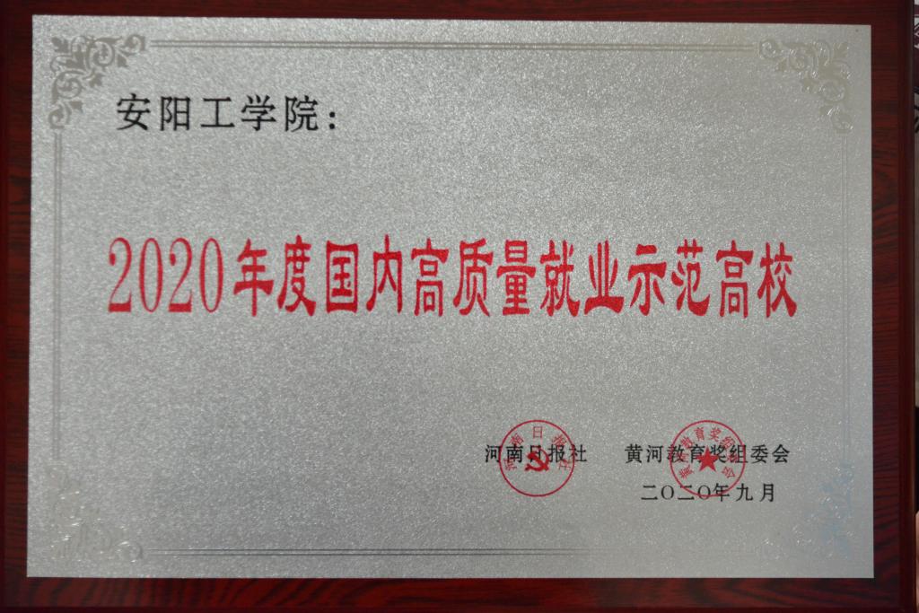 我校荣获“2020年度国内高质量就业示范高校”