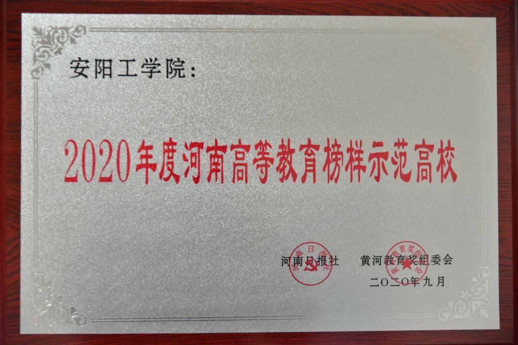 我校荣获“2020年度河南高等教育榜样示范高校”