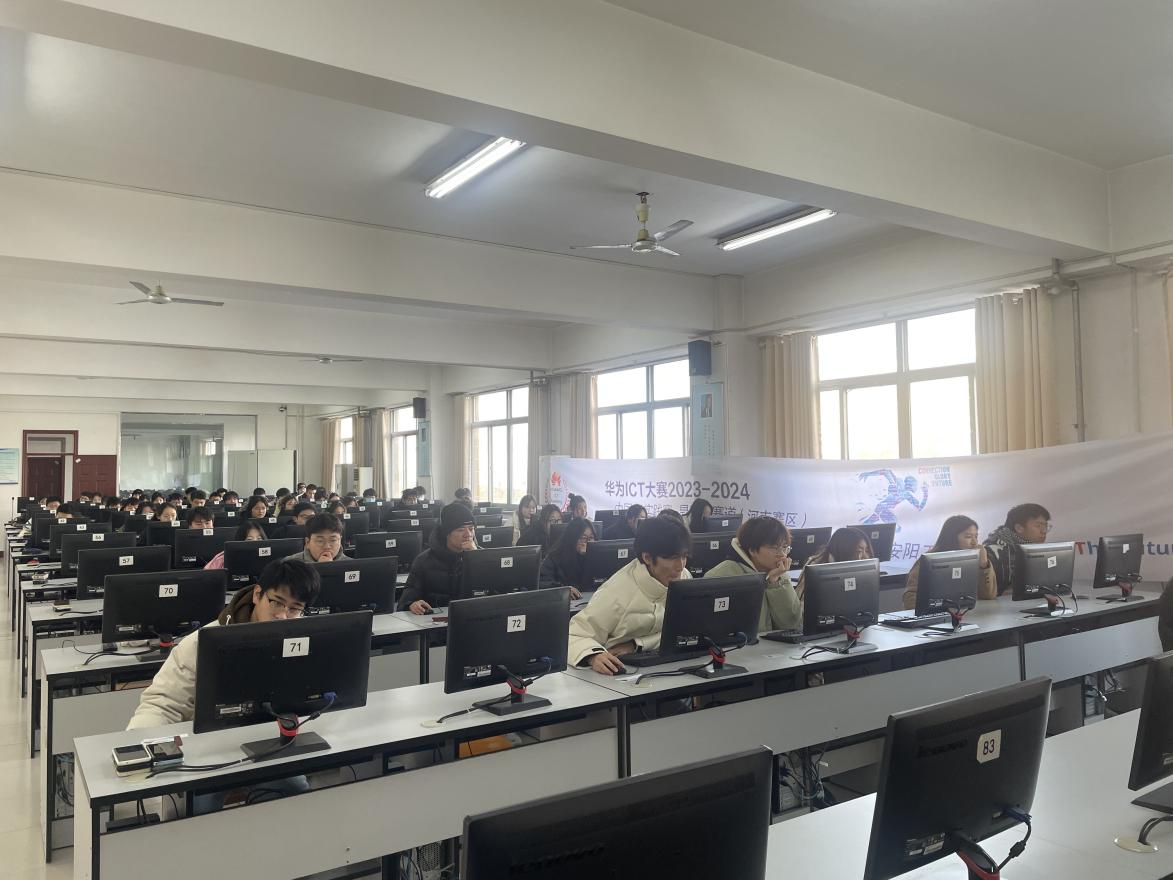 华为ICT大赛(以下简称大赛),是华为公司打造的面向全球大学生的年度ICT赛事。大赛自2015年举办以来,其影响力日益增强,于2021年被中国高等教育学会正式纳入全国普通高校大学生竞赛项目榜单,为业界认可度较高的赛事之一,获得国奖以上荣誉将助力学生高质量就业。昇腾AI赛道为今年大赛新增赛道,吸引了河南省43个本科及高职类学校合计317名学生报名参赛,并于2023年12月23日齐聚ag九游会登陆j9入口A03实验楼的计算机实验室同场竞技。参赛选手严格遵守比赛纪律,充分发挥个人技能水平,展现了良好的精神风貌。在比赛期间,华为河南产业发展部教育科研部经理孙星星来我校指导,对考场进行巡考。