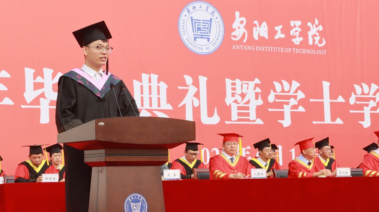 电子电气与无人机学院李静作为教师代表向毕业生致以真挚的祝福,希望同学们热情“启航”,他日荣耀“归航”,在人生航线上书写不负青春、不负韶华、不负所学的时代答卷。毕业生代表、商学院2021级工商管理专业陈修昂在发言中回顾了大学四年充实的生活,感恩母校的培养与师长的关怀,表达了投身社会和报效祖国的决心。优秀校友代表、2012届环境工程专业毕业生、华东师范大学研究员、博士生导师武冬分享亲身经历,寄语2025届毕业生脚踏实地、追求卓越,勇敢开启人生新航程。