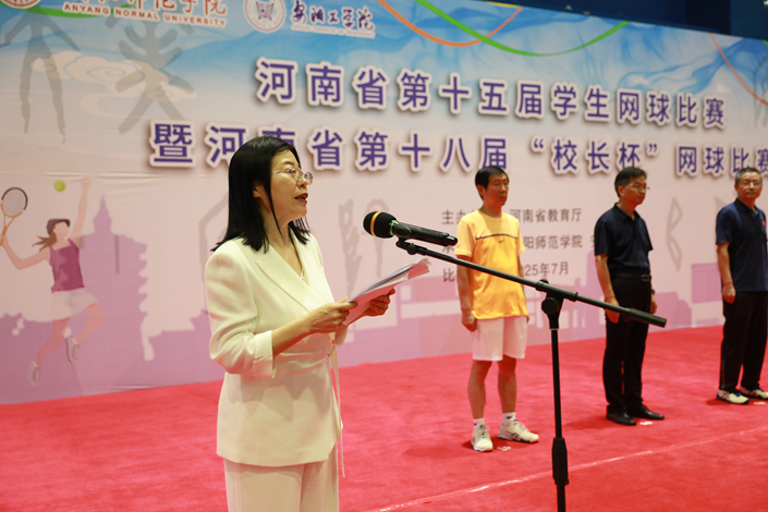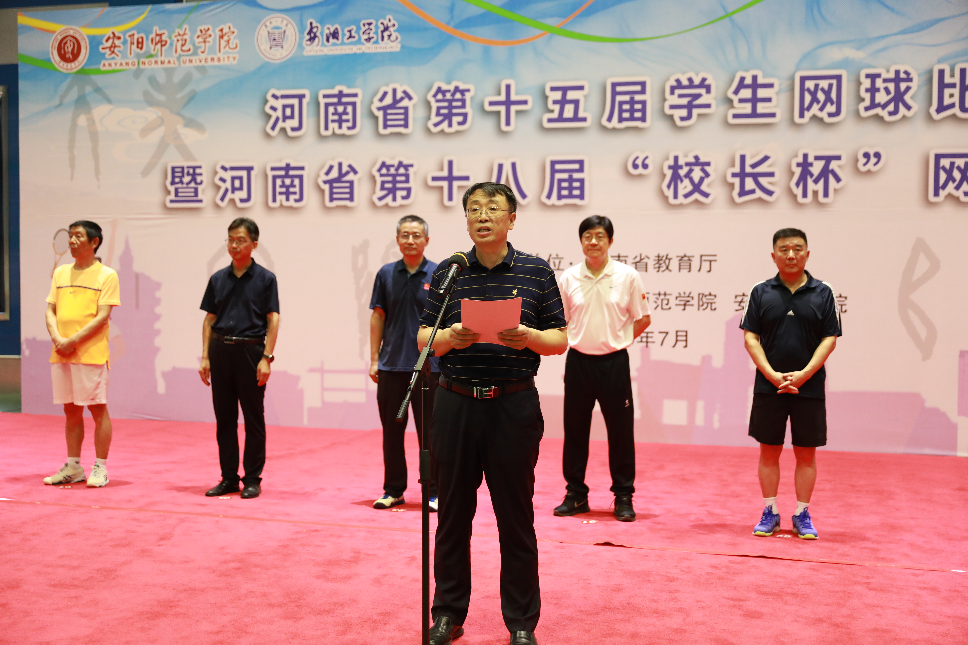 7月13日,河南省第十五届学生网球比赛暨河南省第十八届“校长杯”网球比赛闭幕式在我校举行。省教育厅总督学杨光,校长沈记全、副校长赵卫兵以及相关参赛高校领导出席闭幕式。闭幕式由赵卫兵主持。