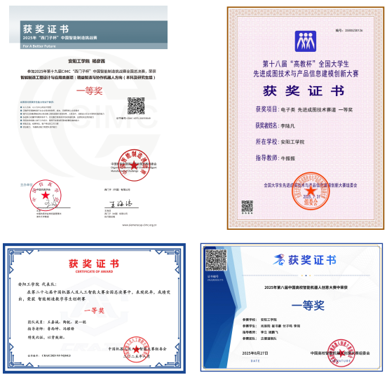 参与赛事包括全国大学生电子设计大赛、“西门子杯”中国智能制造挑战赛、中国机器人及人工智能大赛、中国高校智能机器人创意大赛等竞赛,荣获全国总决赛一等奖11项(含冠军1项、亚军2项)、二等奖18项、三等奖12项;在省级赛区选拔赛中获得特等奖5项、一等奖22项、二等奖11项、三等奖4项,全面展现出学生优秀的专业素养、创新能力和团队合作精神。