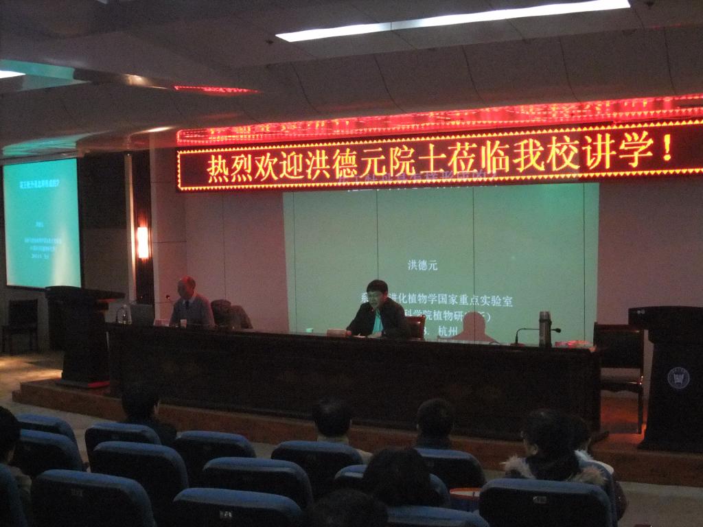 洪德元院士的报告高屋建瓴,语言风趣,例子生动,图文并茂,深入浅出,融知识性、学术性、科普性、教育性于一体,使大家开阔了视野,增长了知识,启发了思维。洪院士严谨的治学态度和平易近人的风范使在场师生受益匪浅。