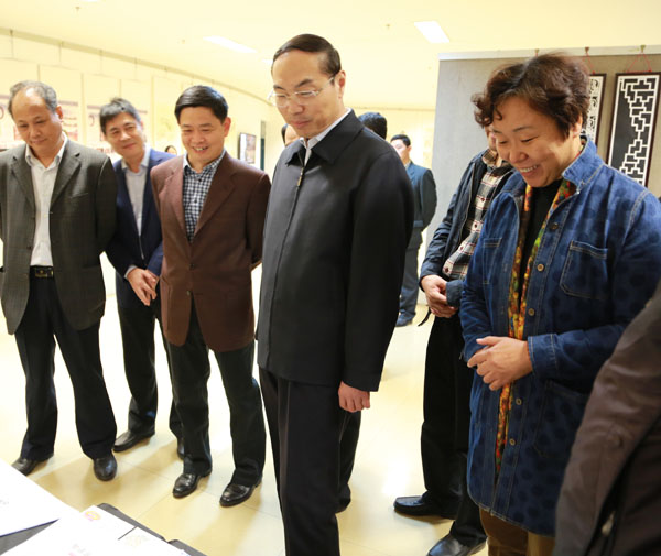 在艺术设计学院展厅,丁巍兴致勃勃地参观了艺术设计学院2014届学生毕业设计作品展,当看到学生自己拍摄的视频短片《九府十八巷》时,丁巍说:“这个短片拍得好”,建议将该片放到市电视台播放。