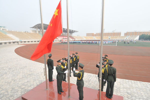 我校在开学典礼上举行升国旗仪式
