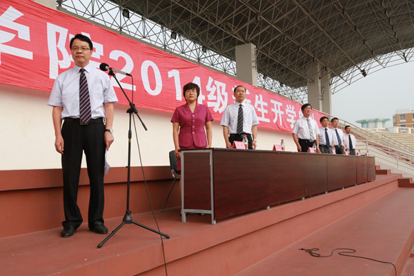 9月10日上午,我校在1号体育场隆重举行2014级新生开学典礼。校领导马跃进、任中普、刘新田、杨培、孙保平、黄宗广、张玲出席开学典礼。仪式由校党委副书记刘新田主持。