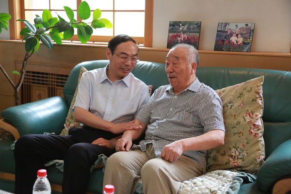 丁巍一行到我校退休教师杜茂德家中看望慰问并与老人亲切交谈