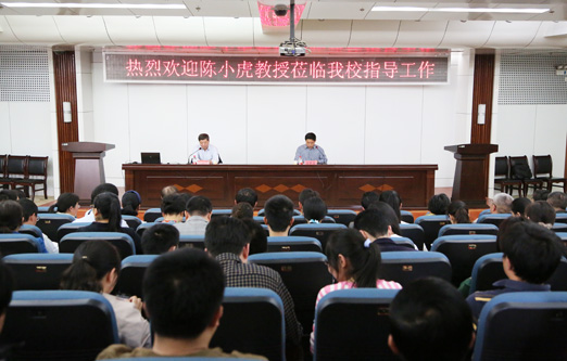 为扎实推进党的群众路线教育实践活动,深入开展“应用型本科教育教学思想观念大讨论”,进一步理清思路,更好地进行评估整改,使应用型人才培养观念深入人心,4月28日下午,我校邀请南京金陵科技学院党委书记陈小虎教授作题为《新型应用型本科院校发展问题》专题报告。全体处级及以上领导干部,各相关职能部门科级以上干部、教学单位党政领导、部分专业教师300余人参加报告会。报告会由校长任中普主持。