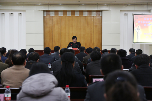 3月12日下午,我校党委书记马跃进在行政楼四楼会议室为全校科级及以上党员干部上了一堂题为《深化群众路线认识扎实开展教育实践活动 促进学校科学发展》的党课,主要内容为党的群众路线的历史演进、新形势下我校党的群众工作面对的新情况新特点,以及如何联系实际深入开展好我校党的群众路线教育实践活动三大部分。