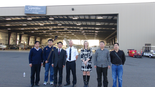 我校校长任中普(左三)一行四人在美国梅西飞行服务公司考察访问