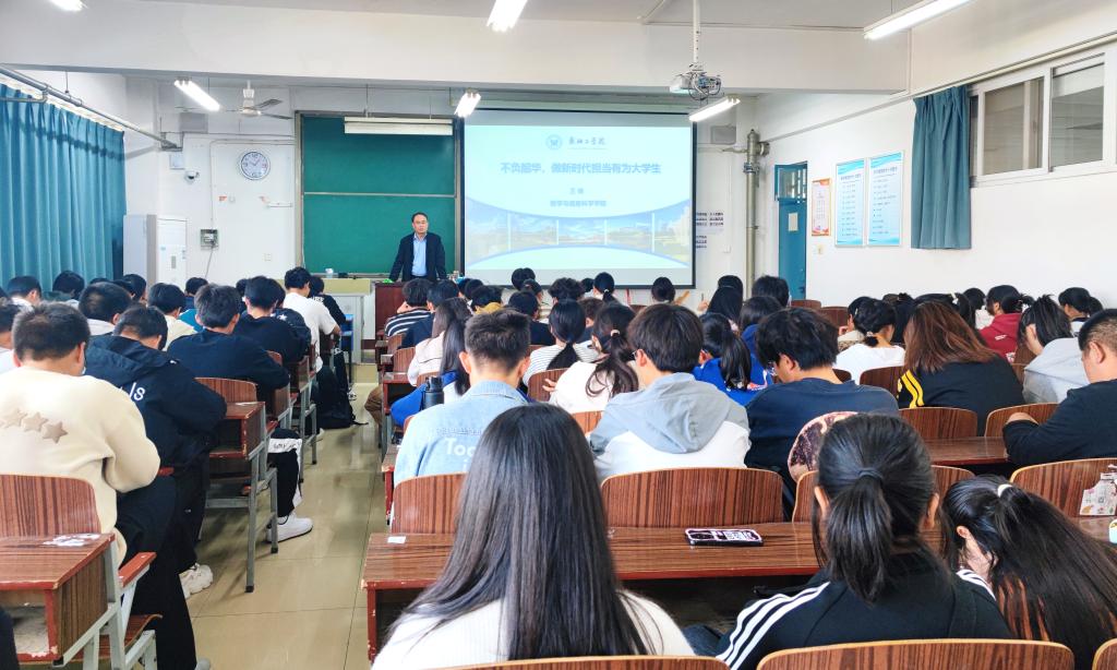 10月30日上午,数信学院党总支书记王锋在A14-604教室为大一学生讲授题目为《不负韶华,做新时代担当有为大学生》的思政课。