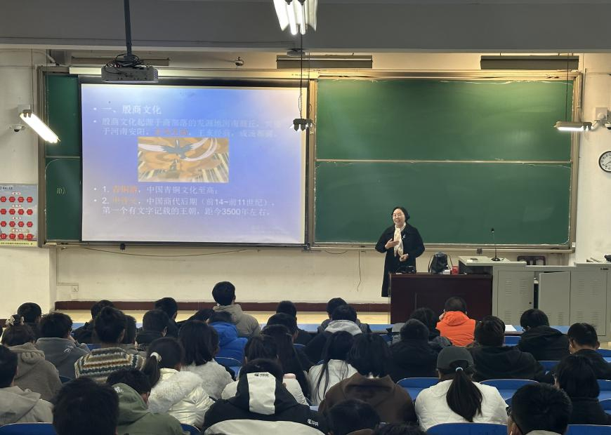 11月10日,材料科学与工程学院院长宋海香在A18-204以“殷商文化与对外交流”为题,为学院200余名新生上思政课。