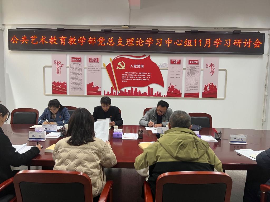 11月15日上午,公共艺术教育教学部党总支理论学习中心组全体成员在B02—311会议室召开学习研讨会,公共艺术教育教学部党总支书记王斐主持会议。学校第三巡听旁听指导组阎冬、何莎莎、崔波全程参与学习研讨并作具体指导。