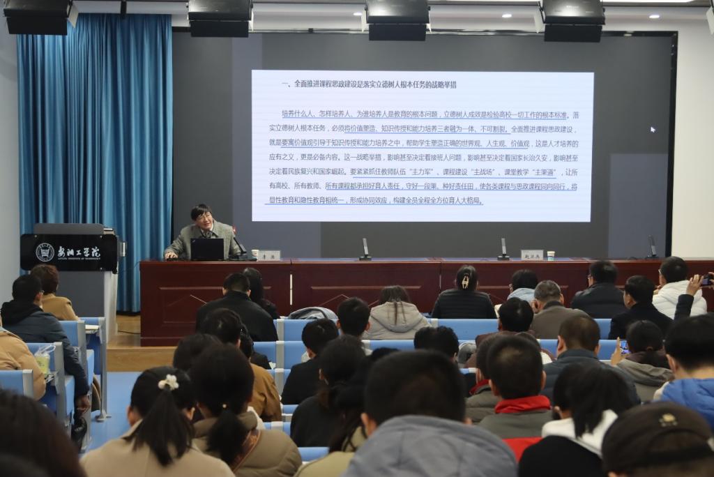 李梁教授从政策层面追溯课程思政的起源与发展,紧紧围绕“课程思政与思政教育的教育逻辑”“专业思政与课程建设的课程逻辑”“专业思政与教学行为的教学逻辑”“课程思政教师职业的专业化逻辑”四条主线进行。他首先阐述了专业思政、课程思政与课程建设的关系,又通过具体的案例深入分析课程思政建设的思路与重点,最后着重介绍了申报国家一流本科课程的要点。他鼓励我校教师,在日常教学中要主动对标国家一流本科课程要求,做好课程建设。