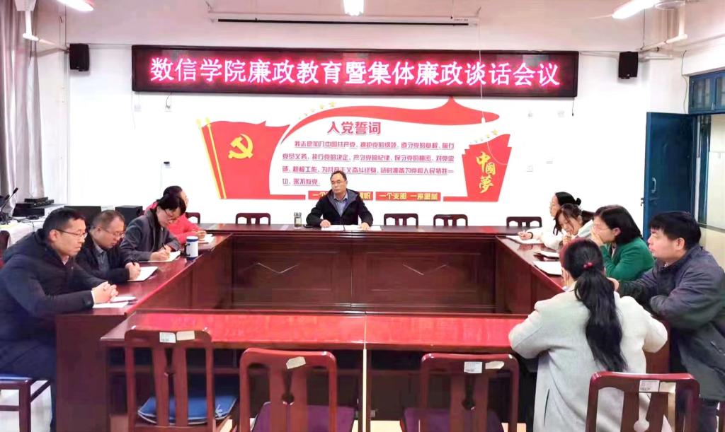 11月20日下午,数信学院在A14-204召开廉政教育暨集体廉政谈话会议,副科级以上干部及副高级以上职称教师参加。会议由党总支书记王锋主持。