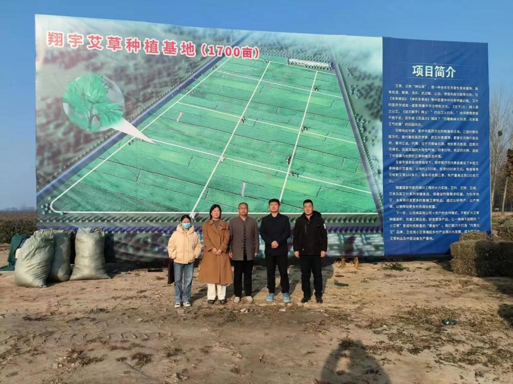 张坤朋一行参观了翔宇公司的艾草种植基地和产品展示大厅,详细了解了艾草种植存在的问题、公司目前开发的产品及下一步打算。张坤朋介绍了学院团队在道地药材方面的研究成果,与企业负责人就艾草的药用价值挖掘和联合产品研发进行了深入交流。