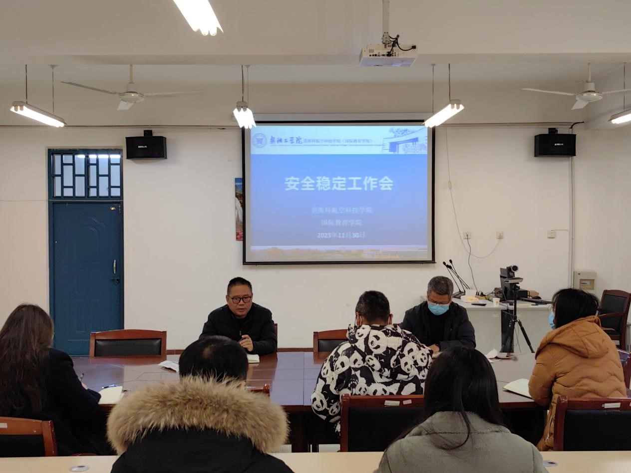 11月30日,莫斯科航空科技学院、国际教育学院在A12-303会议室召开全院安全稳定工作会议。院长侯绍刚主持会议,党总支副书记姚战军及全体教职工参加会议。