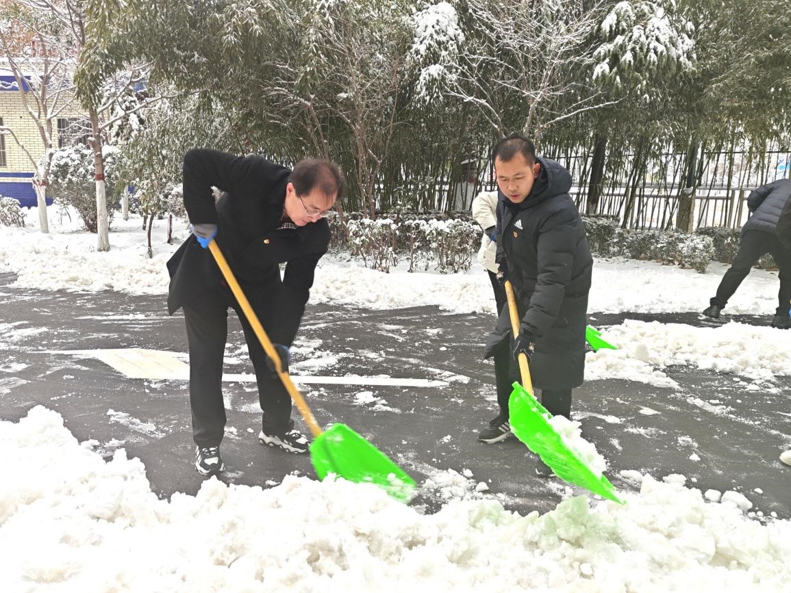 为积极应对雨雪冰冻天气,保障师生安全畅通出行,12月11日、14日大雪过后,洹滨校区、明德书院领导班子带领全体教师党员、学生入党积极分子迅速展开清雪除冰志愿服务。