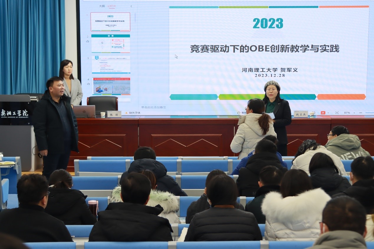12月27日下午,河南理工大学程钢教授、贺军义副教授、张丽副教授在A02-202多功能教室分别作了题为《从上好课,到建好课:以课程建设为主线的教改研究与实践》《竞赛驱动下的OBE教学与实践》《全国高校教师教学创新大赛及经验分享》的专题讲座。我校近200名教师参加,教务处处长兼教师发展中心主任赵卫兵主持讲座。
