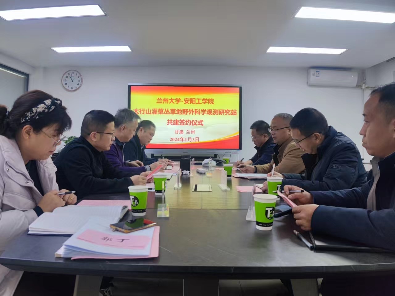 在兰州大学草地农业科技学院会议室,草地农业科技学院院长李春杰、副院长刘志鹏、草地农业科技学院元素利用与管理研究所所长牛得草、兰州大学科学观测站管理中心主任赵长明及相关教师和张坤朋一行进行了座谈交流。刘志鹏介绍了兰州大学草地农业科技学院的办学情况、专业建设规划和特色打造,介绍了草种创新与草地农业生态系统全国重点实验室建设情况。张坤朋介绍了生物与食品工程学院的发展历程、专业建设和学科建设情况。随后双方围绕实验室建设、野外观测站建设前景、科学研究、研究生联合培养等开展讨论交流,并签订共建“太行山灌丛草地野外科学观测研究站”合作协议。