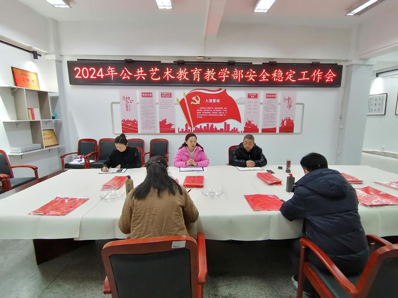 1月20日下午,公共艺术教育教学部党总支在B02-311会议室召开部门安全稳定工作会议。部门党总支书记王斐主持会议,主任姜建平、副主任杨剑及部分教职工参加会议。