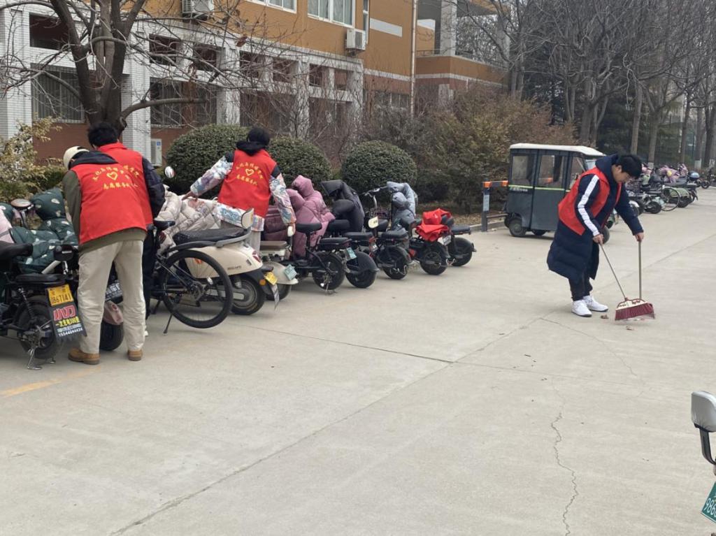 活动中,志愿者们穿梭在校园的各个角落,对路面和绿化带中的垃圾进行清理,以干劲十足的精神状态进行清扫活动。在餐厅、教学楼等电动车集中停放的位置,志愿者们对停放不当的电动车进行集中摆放,并对停车区域的垃圾进行清理。在此次活动中,志愿者们相互配合,充分发挥了团队协作能力,在互帮互助中完成此次活动。