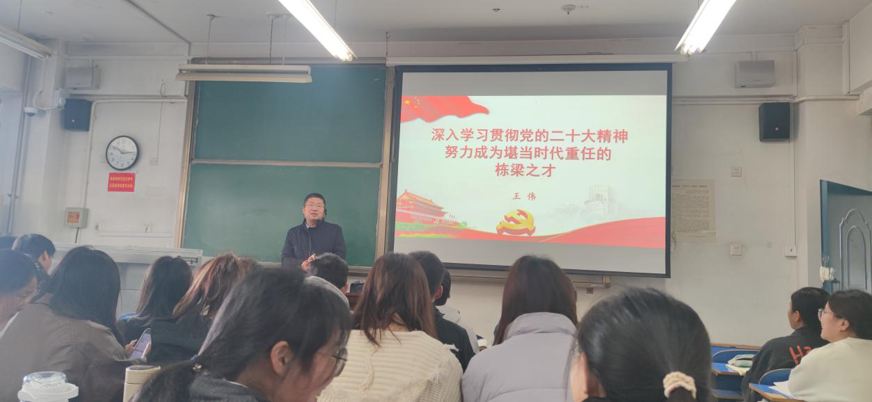 3月12日,党总支书记王伟为学生上春季开学第一课。王伟以《深入学习贯彻党的二十大精神 努力成为堪当时代重任的栋梁之才》为主题,从河南省丰富厚重的传统文化入手,结合近年来世界前沿科学技术成就,对党的二十大报告中关于“推进文化自信自强,铸就社会主义文化新辉煌”等内容进行了讲解和阐释。王伟希望同学们要加强文化知识学习,坚定理想信念,增强明辨是非的能力,找到兴趣爱好和文化传承的结合点,激发学习动力,善用信息技术创新文化传播方式,搭建大舞台,传播中华文化魅力,将自身发展有效融入国家建设发展,在新征程上展现出安工学子的新担当新作为。