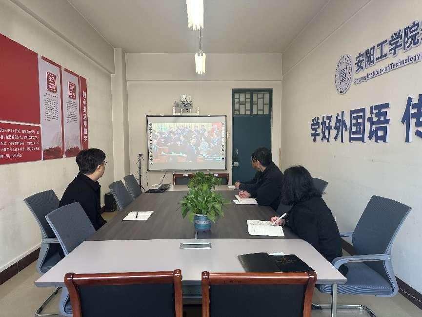 王孟结合学习内容和工作实际,提出三点要求:一要提高政治站位,坚持把全面从严治党向纵深推进,以高质量党建引领业务高质量发展;二要坚持学深悟透,深刻领会习近平总书记在全国两会期间发表的重要讲话精神实质,切实统一思想和行动,奋力开创外国语学院发展新局面;三要聚焦重点工作,围绕学校航空特色和安阳市低空经济发展需求,强化外语赋能新质生产力,为强市建设作贡献。