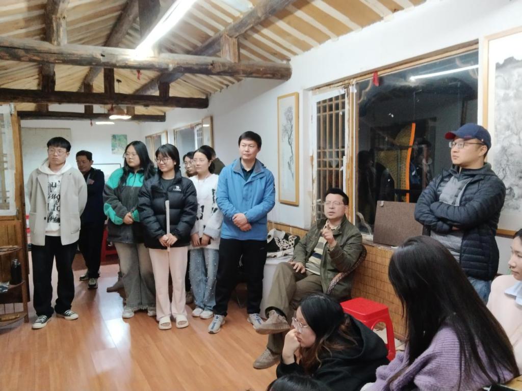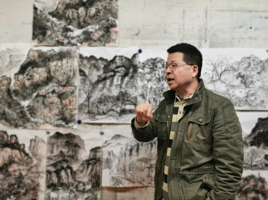 4月8日,山东艺术学院美术学院硕士生导师王兴堂应邀来到我校太行山写生基地,指导艺术设计学院师生写生作品,并对作品进行点评,国画专业师生56人参加活动。