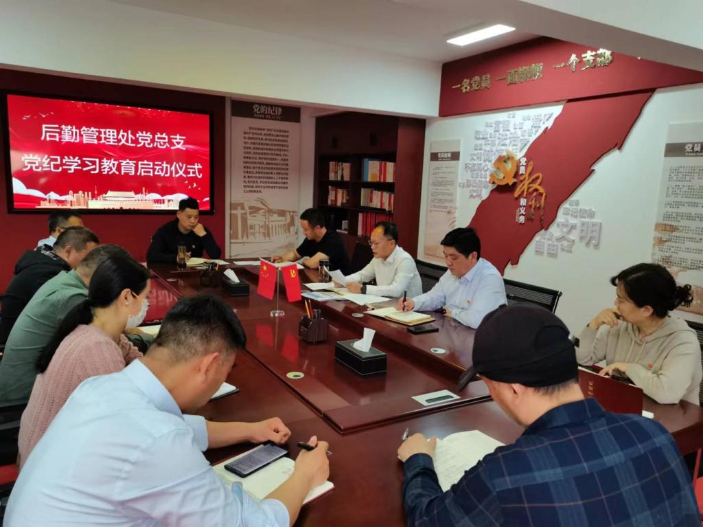 为深入学习贯彻新修订的《中国共产党纪律处分条例》,后勤管理处党总支于4月16日下午,在后勤党建活动室召开党纪学习教育动员部署会。党总支书记戴晓明主持会议,后勤管理处领导班子成员、党总支委员、各支部书记及全体党员参加会议。