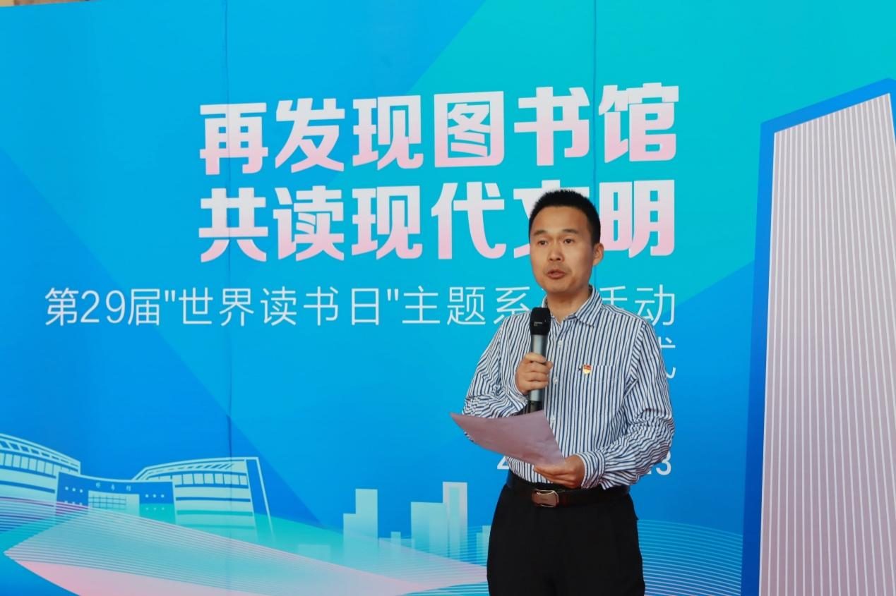 4月23日上午,我校第29届“世界读书日”主题系列活动启动仪式在图书馆二楼大厅举行。党委宣传部部长李红安、团委书记尹艺蓓、学生工作处副处长孙浩宇、图书馆馆长王志杰以及图书馆全体员工、学生代表参加启动仪式。