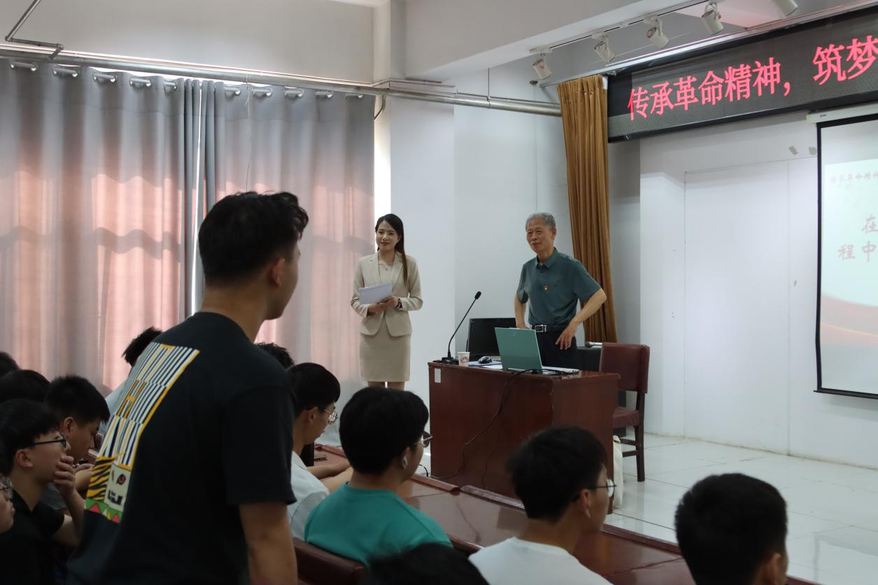 离退休处关工委副主任朱猷卿老师为同学们讲红色故事