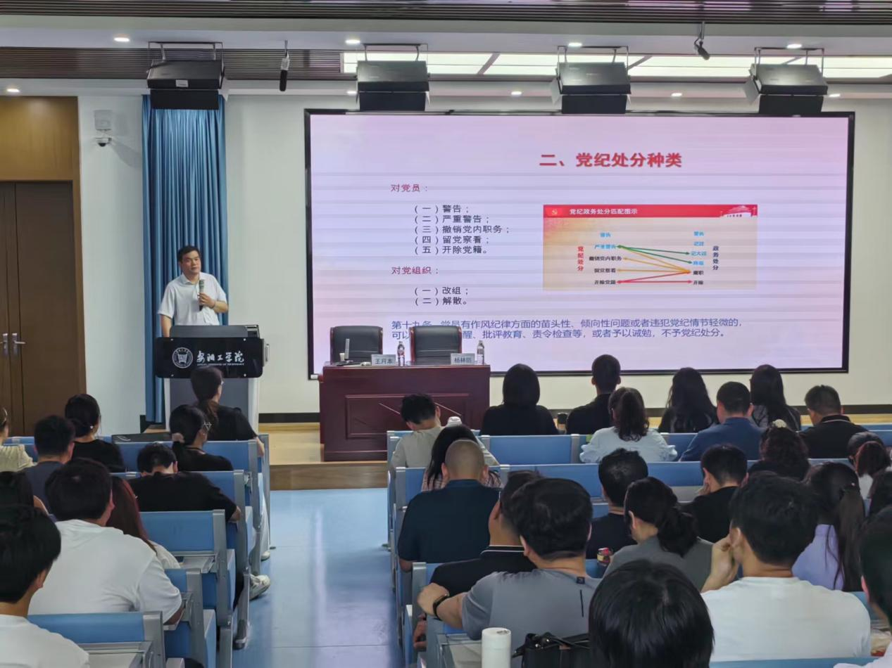中共安阳市委党校副校长杨林防教授受土木与建筑工程学院党总支邀请,以《纪律处分条例解读》为题作辅导报告。报告从“三个突出特点、党纪处分种类、分类重点解读”等方面,结合大量案例,对纪律处分条例进行了全面的解读,深入浅出,旁征博引,课堂精彩纷呈,加深了党员对《条例》的认识和理解,增强了政治自觉和纪律自觉。
