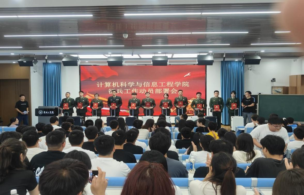 为进一步贯彻落实国家鼓励普通高等学校大学生应征入伍精神,激发学生应征入伍热情,5月24日下午,计算机科学与信息工程学院(软件学院)在A02-202教室举行了征兵工作动员部署会,党总支书记张林、副书记许研、全体辅导员、退役士兵代表及200余名学生参加动员会。