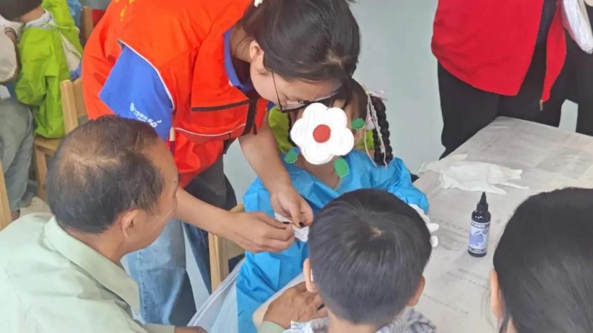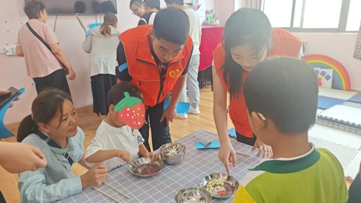 活动伊始,安阳市残疾人联合会听力语言康复教育中心老师向孩子们讲解了“小暑”含义的由来,我校心理中心志愿者们陪孩子们一起学习了小暑舞,在舞蹈的欢乐中让孩子们了解了“小暑”节气的相关知识。随后,遵循特殊儿童的身体协调性、认知能力、创造和想象力、情感和社交能力以及记忆力等方面的身心发展规律,志愿者们与孩子及其家长共同进行了《不期而遇》《西瓜保龄球》《莲韵绽放》《这个西瓜我吃定了》《由染而生》等一系列的互动游戏和创意工作坊活动。志愿者们和孩子、家长一起玩游戏、吃西瓜、做漆扇,收获了一阵阵欢声笑语。