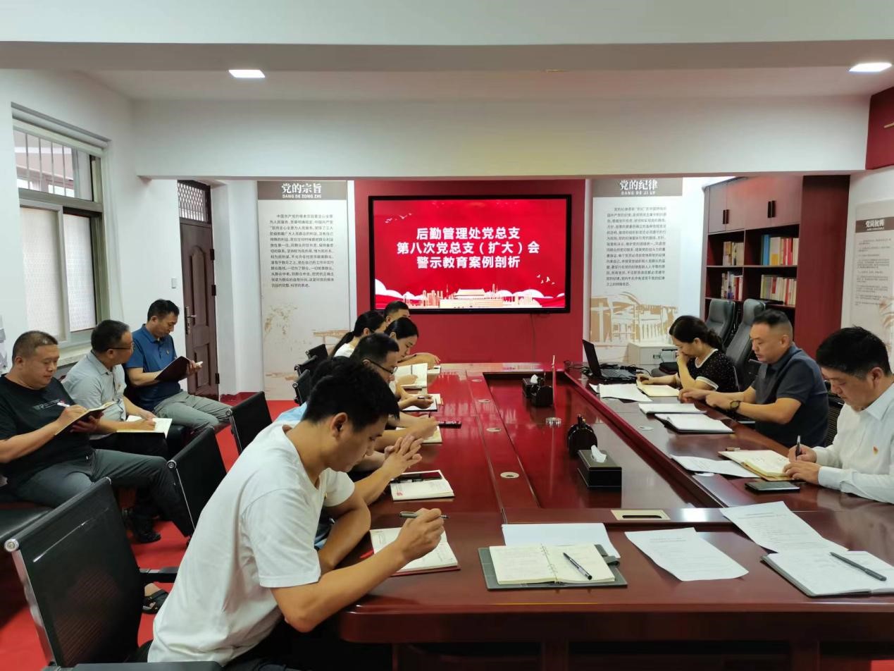 为进一步强化党员干部的纪律意识,筑牢拒腐防变的思想道德防线,7月23日上午,后勤管理处党总支以学习《条例》为主题召开党纪学习教育警示教育案例剖析会。党总支书记刘韶晖主持会议,后勤领导班子,各党支部书记、各科负责人及全体党员参加会议。