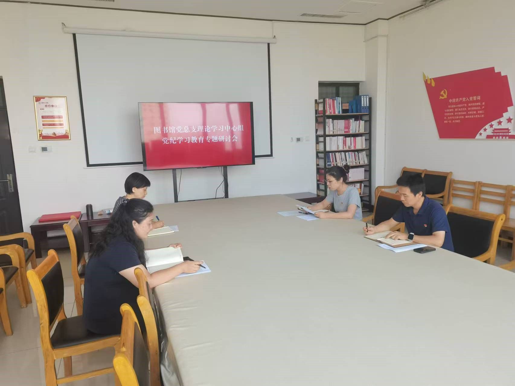 为落实学校党委工作部署,推进党纪学习教育走深走实,7月27日下午,图书馆党总支理论学习中心组开展党纪学习教育专题研讨会。图书馆党总支中心组成员参加,党总支书记蔡敏主持会议。