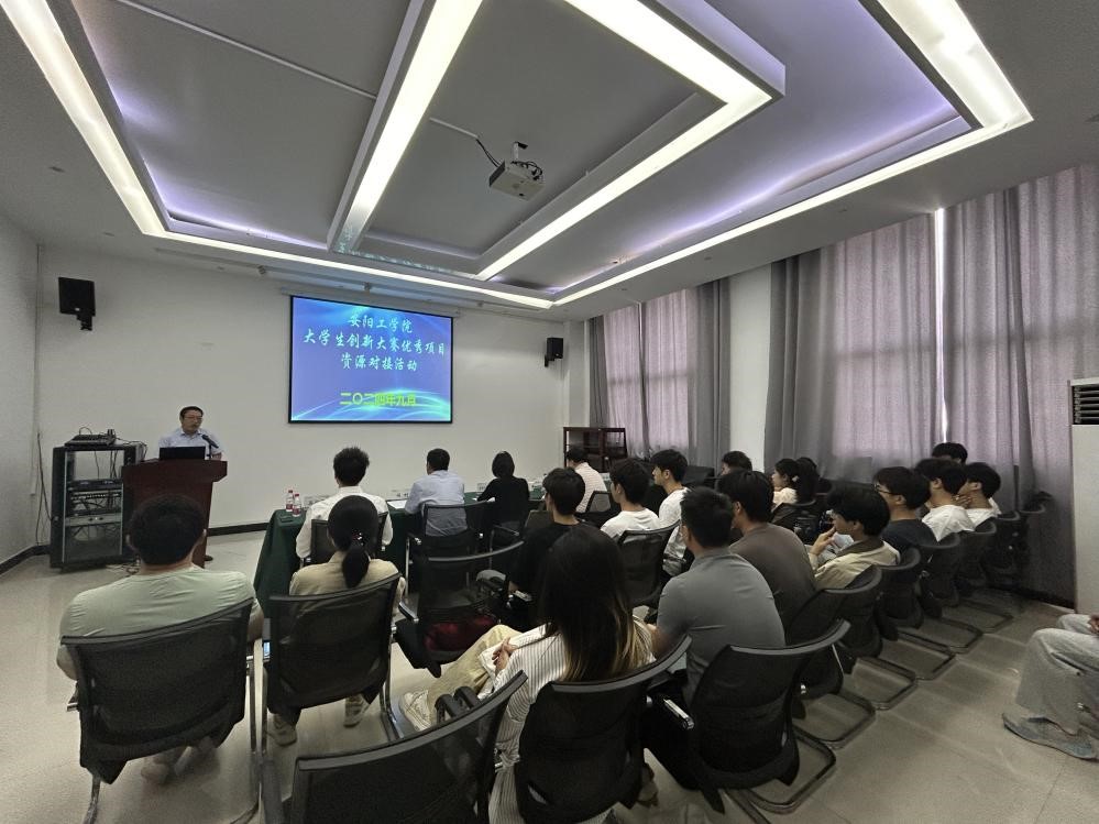 9月11日下午,创新创业学院、笃行书院在安工众创空间路演大厅举办了ag九游会登陆j9入口大学生创新大赛优秀项目资源对接活动,2024年大学生创新大赛优秀项目30余名参赛师生参加了此次活动。安阳市人力资源服务中心党支部副书记魏国利、创业培训科科长董文波,高新区科创局副局长汪瑞,安阳市麟武网络有限公司董事长许振武,创新创业学院、笃行书院党总支书记赵晓晶,党总支副书记、院长阎利参加活动,阎利主持会议。
