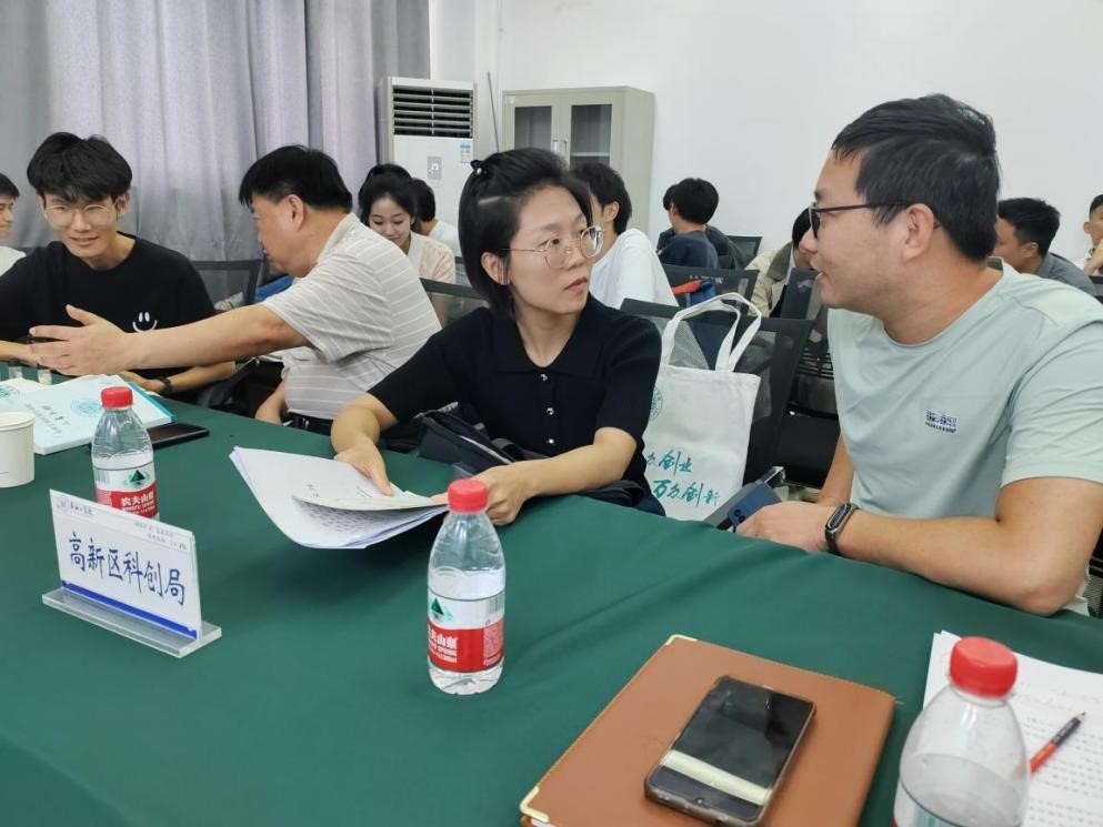 在活动现场,“安水成锌”“超眼先锋”“硬核之翼”等5个优秀项目围绕项目背景、内容与技术亮点等方面做了展示。市人社局董文波科长针对在校大学生创新创业特点,进行了包括一次性开业补贴、大众创业扶持项目、运营补贴、创业担保贷款和税费减免等有关内容的政策宣讲。高新区科创局汪瑞副局长重点讲解了科技型中小企业、高新技术企业的扶持方案以及安阳市科技新政十条等利好政策。随后政府、企业代表与优秀项目展开了一对一交流,讨论氛围十分热烈。
