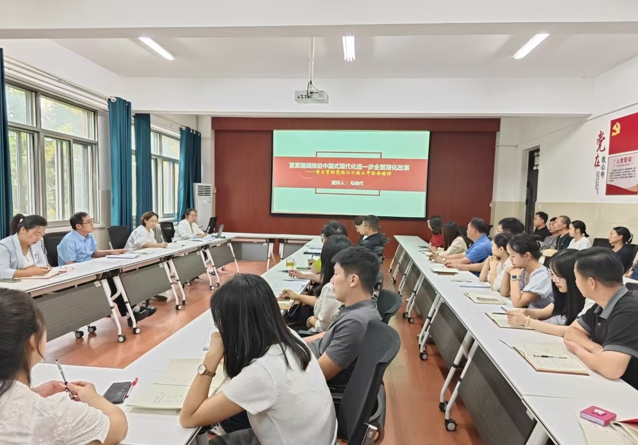 9月13日下午,马克思主义学院在A04-202会议室召开党的二十届三中全会精神宣讲报告会。马克思主义学院全体教师参加,党总支书记关啸猛主持报告会。