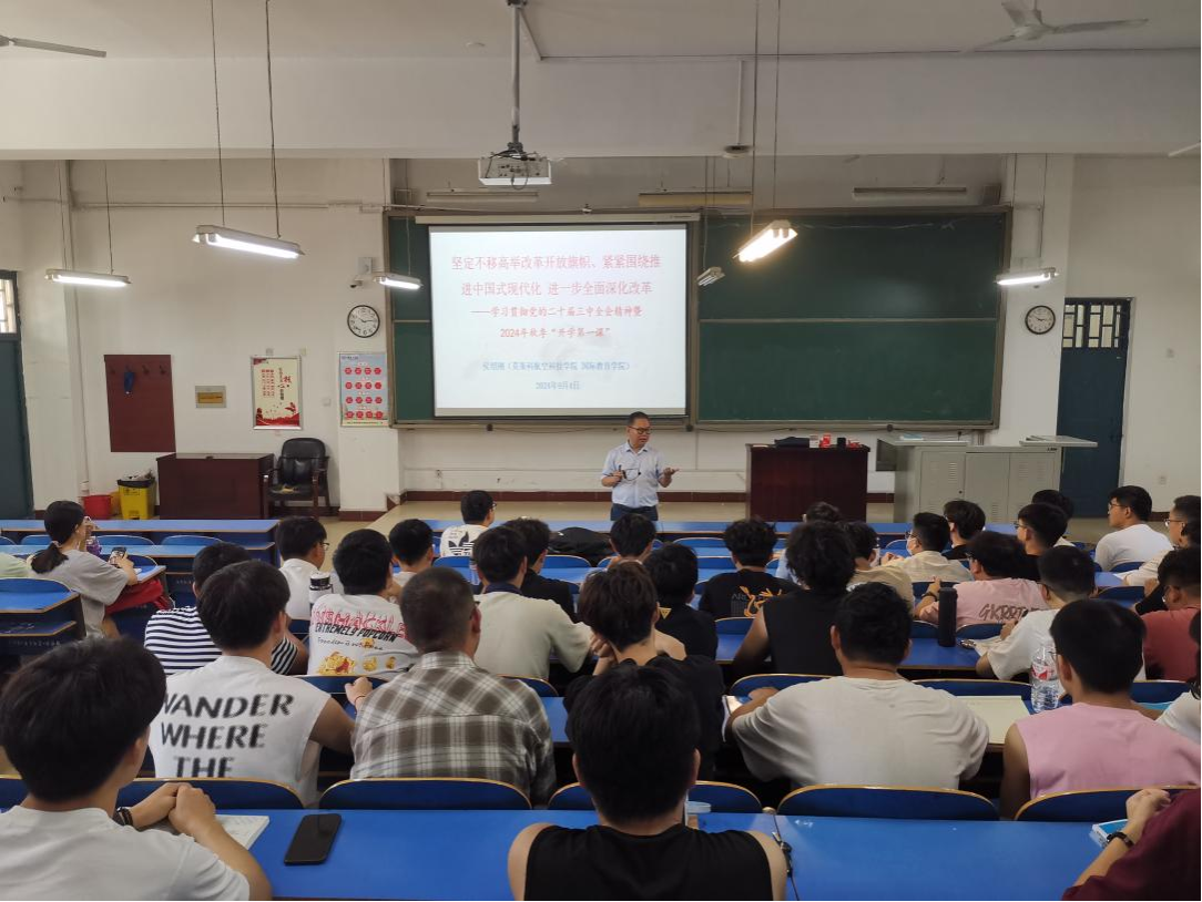 9月6日至14日,学院党总支副书记、各专业辅导员,针对不同年级的在校生,围绕党的二十届三中全会理论宣讲、法制宣传、学风建设、网络安全教育、防范电信诈骗、消防安全、校园安全等方面开展开学第一课教育活动。激励他们在新时代的征程上勇立潮头、敢为人先,在学院营造勤于学习、敏于求知的学习氛围,不断提升自我,为实现中国式现代化贡献青春力量。