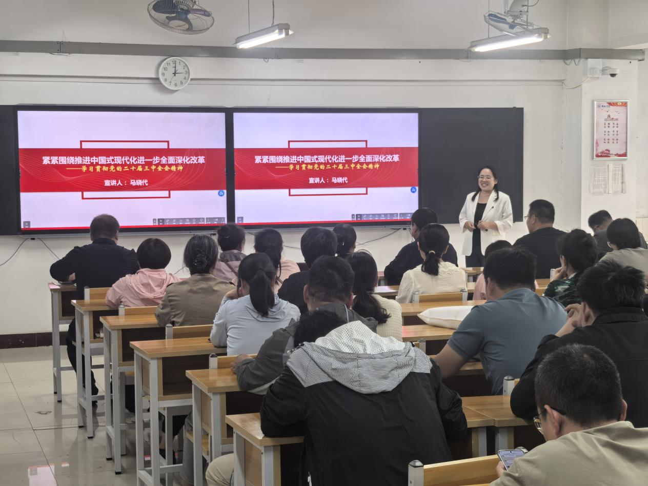 9月25日,为深入学习贯彻党的二十届三中全会精神,机械工程学院邀请马克思主义学院副院长马晓代以《紧紧围绕推进中国式现代化进一步全面深化改革》为题,召开了宣讲会,学院全体教师参加。