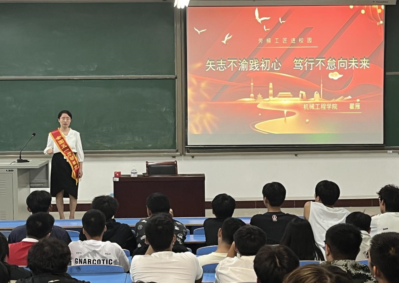 全国五一劳动奖章获得者机械工程学院翟雁老师作题为《矢志不渝践初心 笃行不怠向未来》专题报告