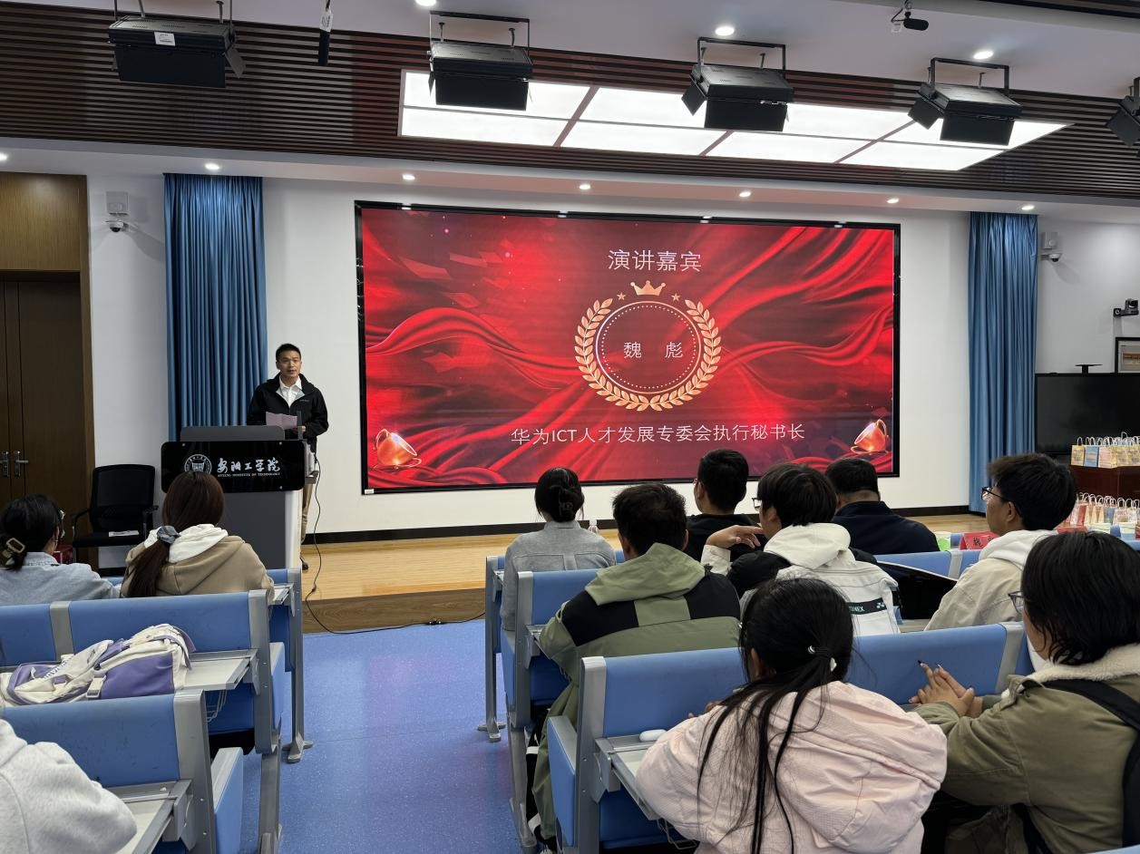 第九届华为ICT大赛中国赛ag九游会登陆j9入口专场路演活动在A02-202成功举办,吸引了来自本校300余名师生参与。在会上,孙高飞致辞介绍了我校在近三年与华为合作取得的成绩,激励学生在新一届大赛中奋勇争先,争取更大突破。魏彪在讲话中强调参加大赛对于提升学生能力的重要性,并特别肯定了我校在人才培养及推动ICT产业在周边辐射方面的努力和成绩。