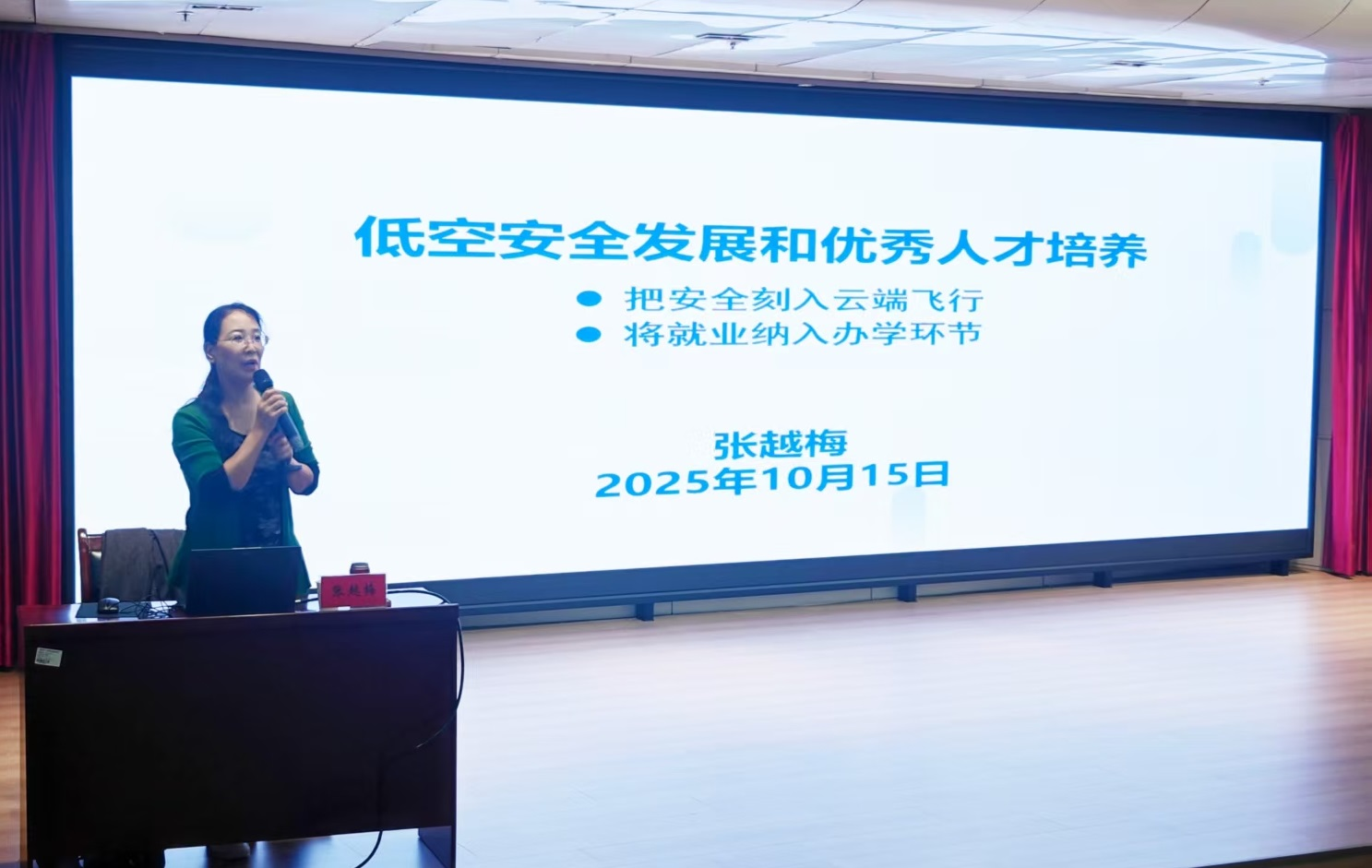 张越梅教授以《低空安全发展和优秀人才培养》为主题,通过详实的数据案例与深入的政策解读,系统阐述了低空经济领域的核心议题。在低空发展层面,她深入解读了国家政策导向与产业发展态势,指出低空经济已纳入国家发展战略布局,正成为推动经济高质量发展的重要引擎。在安全管理方面,张教授重点分析了低空飞行面临的风险类型,详细介绍了安全管理体系(SMS)的构建要点与风险分级管控机制,强调要建立全流程、全覆盖的安全防控体系。在人才培养领域,她系统梳理了当前专业建设现状与人才培养模式,指出要构建多层次、特色化的人才培养体系,并具体分析了涵盖适航安全、运营服务、场景应用等方向的14个就业细分赛道。